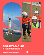 Grupo – Mobilizar para maior segurança Soletanche Bachy – Porto de Cotonou: dois novos ancoradouros para impulsionar a economia do Benin Freyssinet – Um telhado de 20.000 t com cabo para o Estádio BC Place em Vancouver Geoquest – 100.000 m² de muros de contenção ao longo de uma ferrovia de 330 km na Malásia Menard – Mars em acção em dois projectos de auto-estradas na Alemanha Nuvia – Protecção sísmica para o reactor Jules Horowitz Cadarache Estruturas de engenharia – Pontes de cabos
